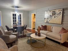 Step inside to a bright, thoughtfully designed living and dining space featuring rich hardwood floors, modern décor, and ample natural light. Relax in the inviting seating area with stylish accent chairs, a comfortable sofa, and curated artwork that ties the room together.