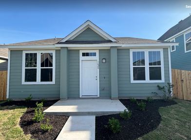 New home built in 2024 has a welcoming front porch and a private backyard, central HVAC, private 2-car garage.