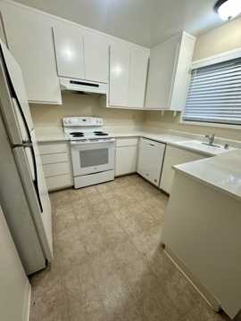 As you walk through the front door you will see the living room with fireplace that leads to the dining area and kitchen. Access private patio through dining room. Kitchen is supplied with refrigerator, electric stove and dishwasher. Half bath downstairs along with 2 storage closets. Upstairs you will find the two very nice size bedrooms. Master bedroom has two closets and 2nd bedroom has walk in closet. Washer and dryer are in the hallway closet upstairs and 2nd bathroom is at the end of the hallway.
