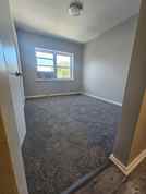 Large open layout with neutral gray walls and oversized windows bringing in natural light.
