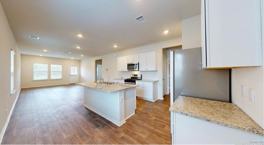 This a two-story home that features 4 bedroom, 2.5 baths, 2-car garage. The gourmet kitchen includes granite counter tops, black appliances, and an open concept floorplan with the kitchen leading to the dining and living room area. A powder bath is located off the entry foyer nook. The private downstairs first bedroom is built with an attractive ensuite which includes a walk-in shower, water closet and grand walk-in closet. A versatile loft greets you at the top of the stairs and is a perfect entertainment area. All secondary bedroom and second full bath are also located upstairs. The rear covered patio located off the living room comes as a standard built-in. Additional features include sheet vinyl flooring in entry, living room, and all wet areas, granite bathroom counter tops, and full yard landscaping and irrigation. This home includes our HOME IS CONNECTED base package which includes the Amazon Dot, Front Doorbell, Front Door Deadbolt Lock, Home Hub, Light Switch, and Thermostat.
