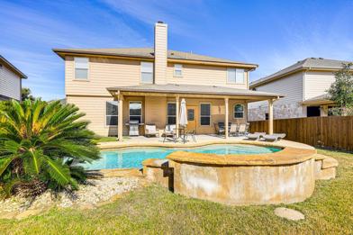 Experience luxury living in this spacious 5-bedroom, 3-bath home located in the heart of Cibolo. Perfectly designed for comfort, style, and convenience, this property comes FULLY FURNISHED-making your move-in experience truly seamless. Step inside to find an open-concept floor plan filled with natural light, a modern kitchen with high-end finishes, and inviting living spaces ideal for entertaining or relaxing. The generously sized bedrooms provide privacy and comfort, while the primary suite offers a spa-like retreat. A secondary bedroom is conveniently located on the main floor - perfect for in-laws, guests, or a private home office. But the true showstopper? The backyard oasis-complete with a sparkling pool and plenty of space to lounge, grill, and enjoy the Texas sunshine. Whether you're hosting friends or enjoying a quiet evening at home, this space delivers the ultimate in resort-style living. Located in a quiet, well-kept community with quick access to I-35, Randolph AFB, shopping, dining, and top-rated schools, this home offers the perfect balance of tranquility and convenience.