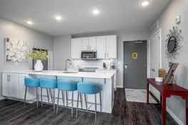 Located at 1 University Way, beautiful updated condos in the north building of One University Place. Condo features luxury vinyl plank flooring, quartz countertops, tiled bathrooms, and tiled showers. Designer finishes throughout. Floor to ceiling windows. Private gym onsite.