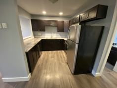 Huge one bedroom apartment 1000 sq ft (the size of most 2-bedroom apartments). New Hardwood flooring, cabinets, counter tops, appliances, windows, and more. Apartment is on the 2nd level with windows overlooking the trees and slope down to Black River. Open concept living room and large kitchen with peninsula. Large Bedroom, large closet (bedroom has 2 large walk in closets), coat closet and pantry. Large Utility room with Washer and Dryer Hookups. Appliances provided include Fridge, Range/Stove and Dishwasher! Has its own private entry. Great views, close to Wadhams, groceries, and restaurant next door. Utility room with Washer and Dryer hookups. Tons of closet and storage space. Assigned parking space under carport. Additional storage available in basement. Garage Parking or Storage available for $75 per month.