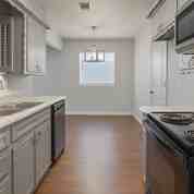 Step inside to a bright living room with updated wood-look flooring, neutral paint, and French doors that let in tons of natural light and open to the backyard. The galley-style kitchen offers plenty of cabinet space, updated countertops, and a dedicated dining area so meals and homework all have a place to happen.