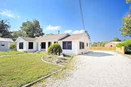 Walk on up along the paved path to this beautifully updated 2 bed/2 bath mid-century home with front covered porch. Be at awe at the marvelously polished hardwood flooring that cascades throughout the living space floor plan. Cozy up to the wood burning double sided masonry fireplace maximizing indoor space comfort. The stylish island kitchen features gas range cooktop, overhead vent hood, stainless steel appliances, and decorative tile backsplash. 1 of the 2 bedrooms comes with carpeting and down the hall from those bedrooms is a full bath with scalloped designed tile in the shower/tub combo. Enter into the primary bedroom suite with luxurious bathroom, tiled walk-in shower, and walk-in closet with built-in shelving. Relax outside in the spacious backyard and enjoy the views from the wooden covered back porch. This property is within minutes of the bustling Downtown New Braunfels and many local amenities.