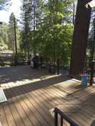 Front deck perfect for relaxing and enjoying the tranquil, wooded surroundings