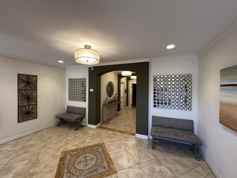 Inside, this elegant residence radiates a warm, refined home-sweet-home ambiance. There is a private balcony with peek-a-boo ocean views. The interior has been freshly finished with premium Emerald paint, complemented by triple-washed upgraded Berber carpet, travertine flooring, granite countertops, stainless steel appliances, and sophisticated custom cabinetry. The open layout flows seamlessly, offering comfort for everyday living and grace for entertaining. The primary suite features a beautifully appointed en-suite travertine shower, while modern conveniences—such as an in-unit washer and dryer, a new energy-efficient central HVAC system, a Google Nest Smart thermostat, and ceiling fans—elevate everyday living.