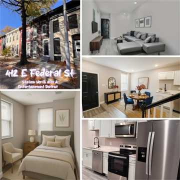 Welcome home to this charming newly renovated 2 bed, 2.5 bath brick row home in the vibrant Station North Arts and Entertainment District, just a short stroll from Penn Station, bus routes, and local shopping and dining. This residence features an inviting open-plan main level with a gourmet kitchen equipped with quartz countertops and stainless steel appliances that flows into the living room, perfect for entertaining. Upstairs, you'll find two generously sized bedrooms, each with its own adjoining en suite bathroom, ideal for families or roommates seeking privacy. A convenient half bath on the main level is perfect for guests, while the rear wood privacy-fenced yard provides the perfect opportunity for relaxation and gatherings. The functional basement offers laundry hookups and excellent storage options. Could also be a den or office. With a brand new roof, HVAC system and hot water heater, this home combines modern comfort with urban convenience.
