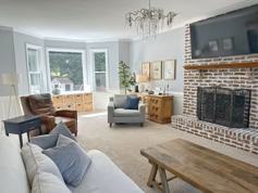 The large living room offers character and comfort with wainscoting, bay windows, and a brick fireplace, making it the ideal gathering space. The chef's kitchen is a dream, boasting stainless steel appliances, gorgeous granite countertops, and stunning tile work that blend functionality with beauty.