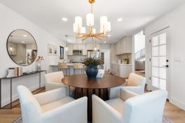 Soaring vaulted ceilings with exposed beams and skylights create a bright, inviting vibe. Each bedroom has its own bathroom, as well as a powder room downstairs for guests. The laundry/mud room is straight out of a magazine—complete with washer/dryer, counter space, sink, and custom details. Comes with a 2-car garage and driveway parking.