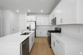 This home offers 4 bedrooms, 2.5 bathrooms, and an attached 2-car garage. On the main floor, a spacious kitchen offers white craftsman-style cabinets, white quartz countertops with gray veining, and stainless steel appliances including the refrigerator! Upstairs is the owner's suite with owner's suite bathroom, laundry room, three additional bedrooms, and a full secondary bathroom. This home also has an unfinished basement with lots of storage room.