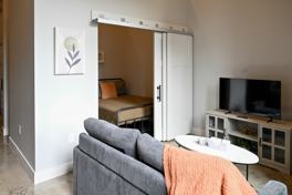 Step into modern comfort with this industrial flat style alcove, featuring a sliding door that smartly separates the sleeping area from the living space, ensuring privacy and tranquility. The unit boasts a fully equipped kitchen with contemporary appliances and a chic, functional bathroom and in-unit laundry. Ideal for those who value both style and practicality.