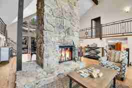 The finished walkout basement offers even more space to unwind, complete with a fireplace, ping pong table, and full bathroom. Step outside to enjoy the 8-person hot tub, play foosball, or cozy up indoors and enjoy the mountain views.