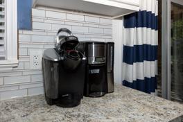 Kitchen: Fully equipped with microwave, stove, oven, fridge, toaster, blender, mixer, waffle maker, and coffee maker (K-Cup and filter options).