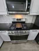 Kitchen: Modern kitchen with stainless steel appliances; fridge, gas range, microwave, dishwasher, and garbage disposal