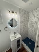 Cozy private room featuring a twin bed, smart TV, and wall-mounted HVAC unit for personalized comfort year-round. Enjoy the privacy of your own bathroom, and access to a shared kitchen space equipped with everything you need to prepare meals. A washer and dryer and conveniently located on the same floor for your use.