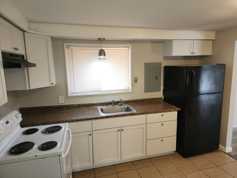 The kitchen has undergone complete renovation with brand-new cabinets and countertops. Included is a gas stove and a fridge. Cooking and meal prep will be a breeze!
