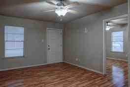 Welcome to this well-maintained 2-bedroom, 1-bathroom home located in Del Rio, TX. This property features a combined living and dining area that offers an open layout suitable for various furniture arrangements. The kitchen includes a refrigerator and electric range for everyday cooking needs. Laminate wood flooring runs throughout the home, providing a clean and cohesive look. Each room is equipped with a ceiling fan to help support indoor comfort. The property also offers access to a shared backyard enclosed by a chain-link fence. This home provides practical features and a comfortable layout for everyday living.