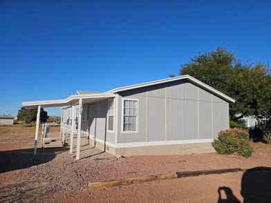 Welcome to this beautiful 4-bedroom, 2-bathroom home located in the beautiful Horseshoe Ranch Estates. This property boasts a range of amenities designed for comfortable living. The home is equipped with a propane system and ceiling fans, ensuring a comfortable climate all year round. The tile flooring in the main living areas is both stylish and easy to maintain, while the bedrooms feature cozy carpeting for added comfort. The master bathroom is a true retreat, featuring double sinks and a luxurious garden tub. The home also includes a covered front porch and a covered back porch, perfect for enjoying the Arizona weather. The property is fully enclosed with chain link fencing, providing a secure space for outdoor activities. Additional features include a storage shed for extra space and the benefits of a Homeowners Association. This home truly offers a blend of comfort and convenience. Dogs on a case by case, limit 2. No cats. Reserve your private tour today.