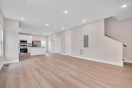 The property boasts an elegant open floor plan with ample space for entertaining. The kitchen is equipped with granite countertops, abundant storage, an island for preparation and serving, and brand-new stainless-steel appliances. The main floor also includes a half bathroom, washer and dryer connections, and a spacious closet for coats or storage. Upstairs, you will find two bedrooms, a full bathroom with a tub/shower combination, and a master suite complete with a walk-in closet. Recessed lighting in the main living areas and ceiling fans in each bedroom enhance the home's comfort.