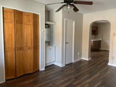 This oversized studio features a separate kitchen and living area, offering more space and privacy than a typical studio layout.