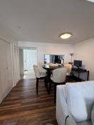 1 Bedroom upstairs, 2 full bathrooms. Modern kitchen with double sink, refrigerator, dishwasher and microwave. Open concept living/dining area with table. Living room with vaulted ceiling, TV and fireplace. Private fenced furnished outdoor patio. No pets allowed. No smoking in unit. Application required for all occupants 18 years old and older.