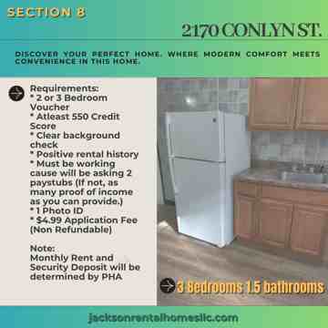 Welcome to 2170 Conlyn St., a charming and spacious 3-bedroom, 1.5-bathroom home that perfectly blends comfort, convenience, and charm. This Section 8–approved property is ideal for families seeking a welcoming space in a peaceful neighborhood, located just a few blocks from La Salle University, Belfield Playground, and Belfield Recreation Center.