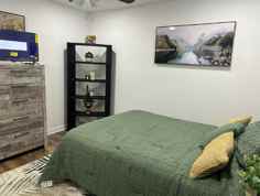 Fully Furnished (utilities and high-speed Wi-Fi included) Queen-sized, comfy bed in each room with fresh linens. The master luxury suite features your own private, direct backdoor entrance for those late-night arrivals or early-morning departures. It also includes a beautiful large bathroom along with a walk-in closet. This home has a cozy and comfortable common area with a fully equipped kitchen.