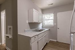 Welcome to 433 Carver Ln, Chattanooga, TN 37404 – a freshly updated 2-bedroom, 1-bathroom home available exclusively for Section 8 voucher holders. This clean and move-in-ready property features a bright and functional kitchen with freshly painted white cabinets, a double sink, and a modern speckled countertop. The kitchen comes equipped with a full-size refrigerator and an electric stove – ideal for everyday cooking needs.