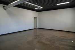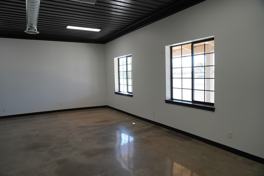 Modern office space available for lease featuring polished concrete floors, neutral finishes, and ample natural light through large, energy-efficient windows. The space offers a clean, contemporary design ideal for professional or administrative use.