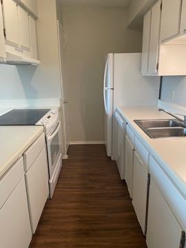One bedroom with a balcony overlooking a green space. Open floor plan with large walk in closet just off the bathroom. Very Quiet and cozy apartment.