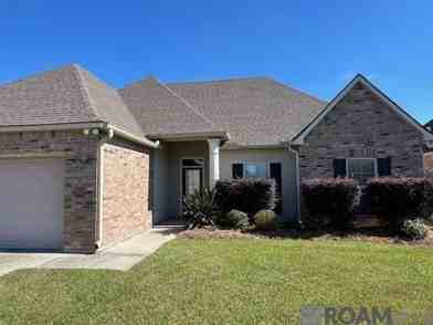 Excellent rental opportunity - 3 bedroom and 2 bath home in desirable Ascension parish better than new. FRESHLY PAINTED INTERIOR AND NEW CARPET IN BEDROOMS. Home features a two car garage, exterior shed, fenced yard, new landscaping, excellent location and top rated Ascension schools. Interior offers wood flooring in living area, tile in kitchen and baths and carpet in bedrooms. Large angled island and dining allows for plenty of eating and gathering, tile countertops throughout, stainless steel appliances, walk-in pantry and oversized laundry. Master suite has double vanity, walk-in closet, separated shower and garden tub. Home will be professionally managed, flowerbeds will be maintained by owner, AC filters maintained by owner. Make this house your home today! Refrigerator there for tenant use.