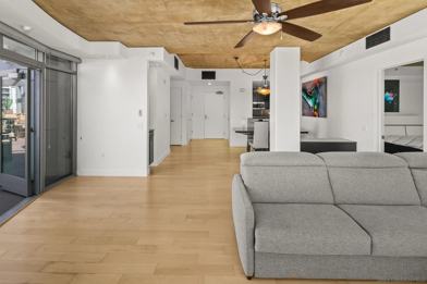 Commanding panoramic views of the iconic city skyline, this expansive terrace is a true extension of your living space, seamlessly accessible from both the living room and the second bedroom. It's the perfect stage for grand-scale entertaining, serene morning coffees, and unforgettable sunset vistas. Inside, the 1,480-square-foot open-concept floor plan is bathed in natural light, courtesy of floor-to-ceiling windows and a thoughtful glass-forward design. Premium features include gleaming maple hardwood floors, custom Hunter Douglas blinds, designer recessed lighting, and distinctive stained concrete ceilings. Retreat to the spacious primary suite featuring an enlarged shower and a California Closets walk-in closet, mirrored by a second large bedroom with its own custom closet system. Experience the vibrant energy of Downtown's best attractions, all while returning to your secluded haven atop Cortez Hill. This is a rare opportunity to own a condominium that offers a private outdoor lifestyle typically reserved for single-family homes. Don't just imagine the views—live them. Schedule your exclusive tour today.
