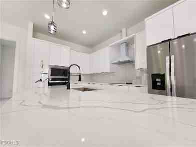 Ready new construction home 2025! 4 Bed / 2 baths - Discover this stunning brand-new construction home in the fast-growing community of Lehigh Acres! On an open floor plan with countless upgrades with 2371 Total Sqft. This single-family home offers luxury features throughout along with quality high-end construction-Double Door Entry, Open Concept Floor, Impact Windows and Doors, Cathedral Ceilings, Smoke Detectors, LED lighting, porcelain tile floors Throughout, Utility Sink. Kitchen Island with room for seating, Wood Cabinets with soft close doors and Quartz Countertops. Stainless Steel Kitchen Appliances. Spacious Master Suite with Cathedral Ceiling, Walk-In-Closets, Dual Sinks, Glass Door. Two Car Garage, Driveway in Pavers, sprinkles Large and Relaxing Lanai. Wonderful and quiet neighborhood, NO HOA fees! This Property is ready to live and enjoy now!