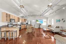 Available for immediate move-in as an ANNUAL RENTAL! Come and check out this remodeled Triplex. Fully furnished second floor unit with 3 bedrooms, 2 bathrooms, 2 upper decks and ALL UTILITIES INCLUDED at walking distance from the beach and very close to downtown Fort Myers Beach for $3400/month. House has a warm and cozy feeling with an open floor plan and volume ceilings with wooden floors throughout. Kitchen has tons of counter space with stainless steel appliances , breakfast bar and kitchen island. Very spacious living room off the kitchen and entrance area. Master bedroom has a king size bed, other 2 bedrooms have each a queen size bed. TV's in all rooms. House has central AC, easy parking, laundry in back area.