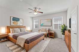Luxury and efficiency meet in this stunning 2,562 sq. ft. two-story home designed for modern living. Soaring ceilings and open living spaces create a bright, welcoming atmosphere. The stylish kitchen boasts 42" cabinets, granite countertops, stainless steel appliances, walk-in pantry, and decorative backsplash—perfect for both everyday meals and entertaining. A spacious upstairs game room offers the ideal spot for fun. The first-floor primary suite is a true retreat, featuring a spa-like bath with separate tub and shower, plus an oversized walk-in closet. Flooring includes elegant wood-look tile in common areas and plush carpet in the bedrooms. Natural light fills the home through 2" blinds, adding warmth throughout. For peace of mind, this home comes equipped with solar panels and backup batteries, keeping you comfortable even during power outages. Combining style, space, and sustainability, this home is ready to impress.
