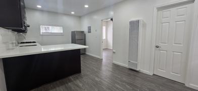 • Kitchen includes a stove and refrigerator.