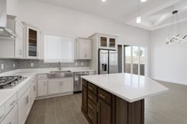 Experience modern living in this stunning Aaron-II floor plan with 4 bedrooms and 2 bathrooms. This beautiful home features an open-concept design including a chef's kitchen with stainless steel refrigerator, a spacious island, and a large walk-in pantry. The great room offers a cozy fireplace and overlooks the dining area and backyard through expansive sliding glass patio doors, creating a seamless indoor-outdoor flow.