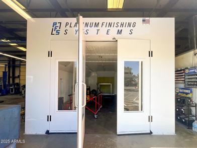 auto body shop space for lease. includes service bay with paint booth, paint mixing and tool storage room, outdoor canopy space for frame work and one private office. asking $2,500 per month. square footage is estimated
