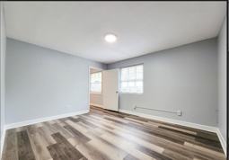 Lovely 2 Bedroom apartment featuring a spacious kitchen with stainless steel appliances, bright cabinets, new countertops, plank flooring, and new bathroom vanities and light fixtures.