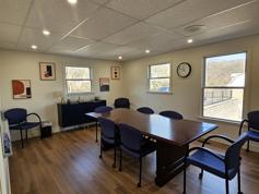 Private office (roughly 12.5 x 12.5) and shared common areas including furnished lobby, conference room, and kitchen. Lease also includes parking, alarm monitoring, comcast internet, locking mailbox for each suite, and all utilities (water, sewer, electric, gas).