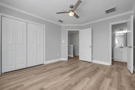 Crown molding, tall baseboards, and a soft neutral palette that create an atmosphere of understated luxury