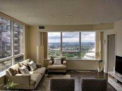 This cozy suite offers an open concept Kitchen & Living room area with stainless steel appliances, granite counters and modern finishes, in-suite laundry, large windows and two balconies. Two bedrooms, one with a good size balcony. This Luxury Condo offers all the amenities that you can desire including outdoor Patio and BBQ area, Party Room, Visitor Parking, Car Wash, Elevator, Guest Suites, Jacuzzi, Media Room, Indoor Pool, Games Room, Gym, 24/7 Concierge/Security.