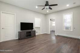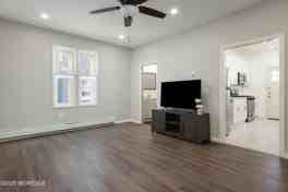 LOWER LEVEL ANNUAL RENTAL! Beautifully updated 2 bedroom, 1 bathroom apartment with 9ft ceilings on the East side of vibrant Asbury Park, just 5 blocks to the beach! The spacious family room has access to the updated eat in kitchen, with quartz counters, custom cabinets, breakfast bar and stainless steel appliances. There are two large bedrooms, both with ample closet space. There is private access to the basement for storage. Off street parking for 1 car & shared laundry included in rent. Available Jan 1, 2026.