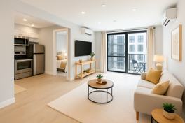 Each apartment features expansive layouts with oversized windows that flood the space with natural light. Most units include two large private balconies, perfect for indoor-outdoor living. Residents will also enjoy access to a rooftop and a shared backyard retreat, providing multiple options for relaxation and entertaining.