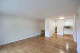 2BR/1BA in a building on Wayne Place between 3rd Avenue and Athol in Cleveland Heights. Floors are hardwood except in bath. Living room has sliding glass doors that open onto the exclusive use deck. Deck is a slightly raised platform outside the unit. Kitchen is at the far end of the living room. Its all stainless appliances include electric stove, microwave and dishwasher. A breakfast bar for two separates it from the living room. There is a closet with folding doors on one side of the living room. Both bedrooms have dual wall closets with sliding mirror doors. Bath has shower-over-tub.
