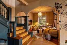 Available for rent for the first time ever, & pets are allowed! Homes with this level of history, character, & modern updates rarely become available for rent in the Greater Philadelphia area. This remarkable property sits directly on & overlooks the 4.4 acre Robinson Park, in the heart of the sought after Wyncote Historic District within the A Rated Cheltenham School District. Robinson Park features an active & thriving community garden, a lovely pond, native flora & fauna, & originally served as the formal gardens, swimming pool, tennis courts, & mini golf course for the family of Henry Kline "H.K." Walt. The home was designed by the architectural firm of Heacock & Hokanson & constructed in 1899 for Henry K. Walt, a successful financier & President of the Jenkintown National Bank. This home has been meticulously preserved & updated to offer modern comfort while retaining every bit of its period charm. This stately & stunning fully renovated 5 bedroom 2 full bath Tudor home features a 4 car brick paver driveway, a front yard framed by stone walls, & a large perennial landscaped rear yard that is fully fenced & gated with fieldstone walls & steps, organic raised herb & vegetable beds, flower beds, specimen trees, a two tier wraparound patio, & a wraparound deck directly off the kitchen. The outdoor spaces are exceptional for kids, pets, play, entertaining, barbecues, birthdays, & special occasions. Enter through an enclosed front porch & sunroom with a wall of windows that leads into the foyer. From here, step into the living & family room with a free standing wood burning fireplace & scalloped archways, dining room with original pocket doors, & the gorgeous renovated cook's kitchen offering abundant storage & counter space, custom inset wood cabinetry, Zellige tile backsplash, quartz countertops, undermount sink, disposal, an ILVE 5 burner gas range & convection oven, Fisher Paykel refrigerator & freezer, Miele dishwasher, LG combo microwave/air fryer/convection oven (all appliances replaced within the last 3 years), brushed brass lights & faucet, custom wallpaper, & a pantry. The kitchen opens to the wraparound deck & to the elegant butterfly staircase connecting the upper floors. The baths have been updated, & the upper floors include the added convenience of a laundry room with a brand new Maytag washer & dryer. The second floor features a spacious primary bedroom suite with a dressing & sitting area, a full bath with radiant floor heating, & a combination bathtub & shower, along with two additional bedrooms. The third floor includes the fourth & fifth bedrooms, another full bath with a walk in shower, & a laundry room. The front bedroom on the third floor can make an excellent office or dedicated pet space. Additional updates & features include complete professional interior & exterior painting with Farrow and Ball colors, lime wash accents in select rooms, a Weil McLain gas heating system, Carrier high velocity central air system, a Bradford White gas hot water heater, 200 amp electric, an architectural shingle roof, original hardwood floors throughout, original wood pocket & paneled doors, Andersen Low E replacement windows, restored casement & double hung windows, beautiful moldings & millwork, & brass, crystal, & porcelain door hardware. The huge walkout basement offers direct access to the fenced rear yard & includes high ceilings, a utility sink, workshop, kids/pets/fitness rooms, & storage/gardening..