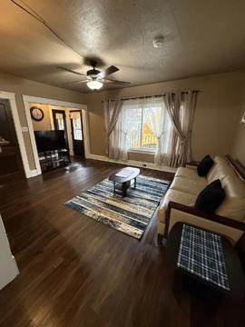 -Living room comes with area rug, tv stand/table will be in place, table set, and a leather couch.