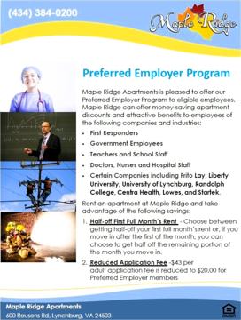 Maple Ridge Apartments presents a welcoming community with stunning views of the James River. Our convenient location provides easy access to essential amenities. Within a 10 minute drive, residents can find 2 shopping centers featuring grocery stores, dining options, and many retail shops.